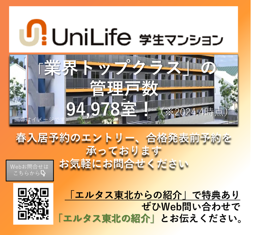 UniLifeの学生マンションのお問い合わせは以下の「詳細を見る」から