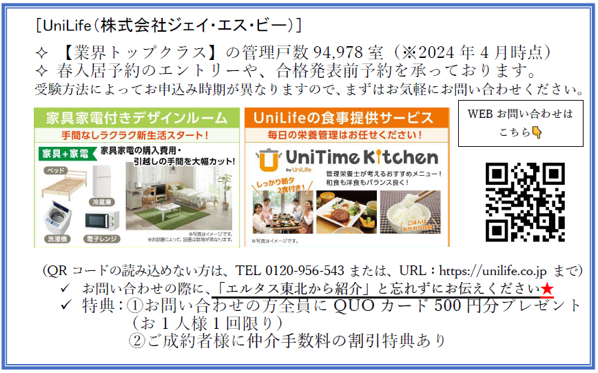 ※特典を受けるにはお問い合わせの際に「エルタス東北からの紹介」とお伝えください